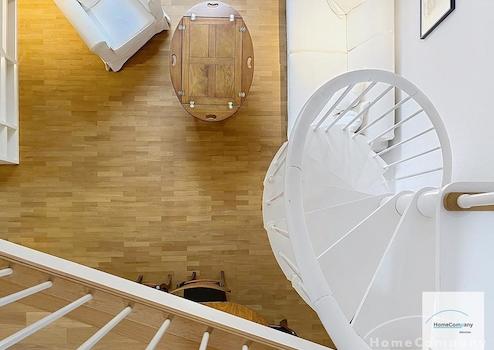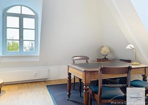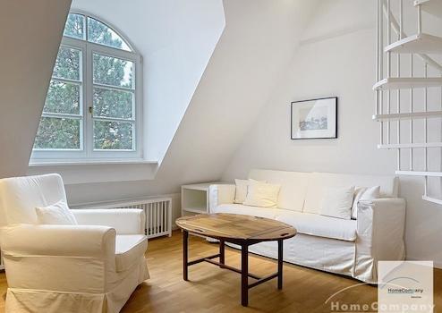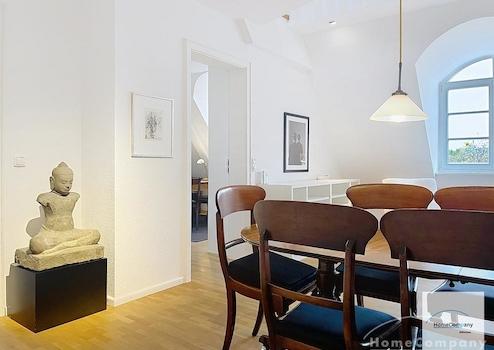 Die großzügige Wohnung besticht durch ihre besondere Raumaufteilung mit Galerie und durchdachtem Wohnkonzept. Hochwertige Antiquitäten, große Fensterfronten und der Blick ins Grüne schaffen ein exklusives Wohnambiente.
