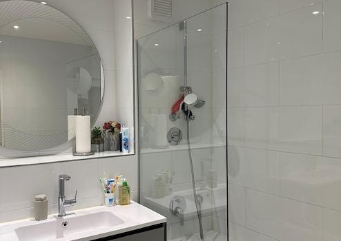• Neues Badezimmer mit Badewanne und moderner Ausstattung