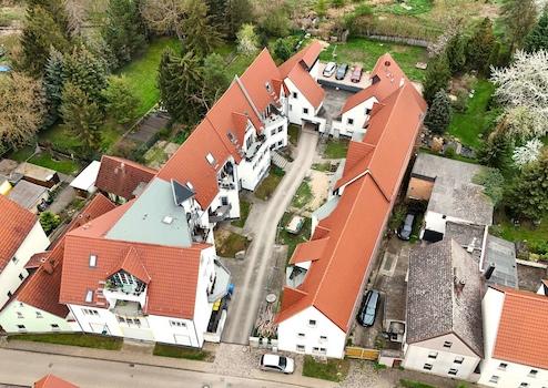 Der Gebäudekomplex besteht aus 21 Wohneinheiten mit verschieden Wohnungsgrößen von ca. 57 m² - 163 m² und einer Gewerbeeinheit. Diese befindet sich straßenseitig im Erdgeschoss mit einer Fläche von ca. 80 m². Die Umnutzung zu einer Wohneinheit ist denkbar. Die restlichen Wohnungen im Erdgeschoss des linken Gebäudeteils sind barrierefrei. Im Obergeschoss befinden sich hauptsächlich großzügige Maisonette-Wohnungen mit einer eigenen Eingangstür. Die Wohnungen erstrecken sich teils über drei Etagen und haben eher den Charakter eines eigenständigen Reihenhauses. Im hinteren Teil des Gebäudekomplexes befinden sich noch zwei weitere 5-Raum-Maisonette-Wohnungen mit 160 m² Wohnfläche. Diese sind durch eine große Terrasse verbunden.