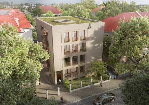 Das Gesamtgrundstück, auf dem sich bereits eine historische Stadtvilla befindet und welches um diesen exklusiven Neubau erweitert wird, bilden gemeinsam eine WEG und stehen auf einem ca. 1400m² großen Grundstück. Das bereits bestehende in der Gründerzeit errichtete Gebäude ist bereits nach WEG aufgeteilt und durch den Neubau wird die WEG erweitert - beide Häuser zusammen bilden dann eine Eigentümergemeinschaft. Im Kellergeschoß des Neubaus befindet sich eine Tiefgarage, wo auch 5 Stellplätze für die Eigentümer der anderen WEG untergebracht werden. Der nach Westen ausgerichtete Garten bietet viel Platz für Erholung.
