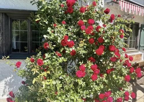 - Viele große tragende Obstbäume (Apfel, Kirsche, Zwetschgen) im Garten.