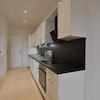 - Küche mit neuem Fliesenboden (Feinsteinzeug-Fliesen in beige)