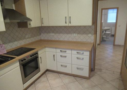 Die Küche ist mit einer Einbauküche (Elektrogeräten) ausgestattet; eine geflieste Terrasse ist ebenfalls vorhanden. Ferner gehören ein Kellerraum und ein TG-Stellplatz zur Wohnung. Der TG-Stellplatz ist in der KM enthalten.