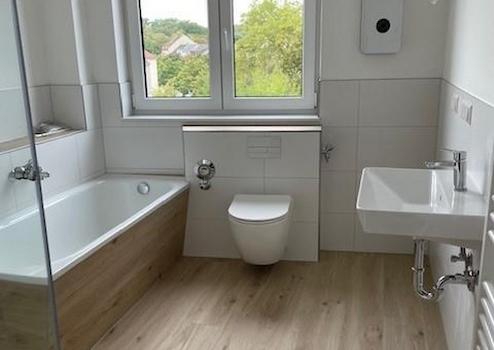 Die Küche ist als offene Küche im Wohnzimmer geplant. Außerdem gibt es noch 3 Schlafzimmer. Das Badezimmer verfügt über einer Badewanne mit einer sep. Dusche, alles geschmackvoll und neu gefliest.