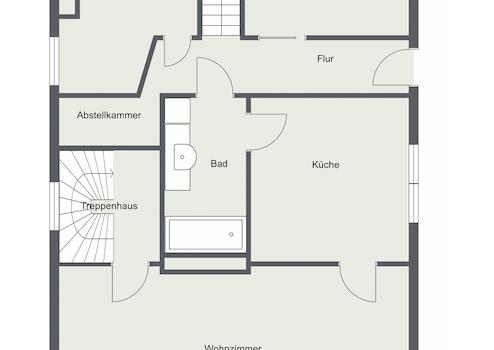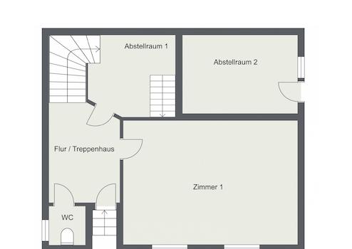 Flur/ Treppenhaus, WC, Zimmer 1, Abstellraum mit Zugang zum Kellerraum, Abstellraum 2 von außen begehbar