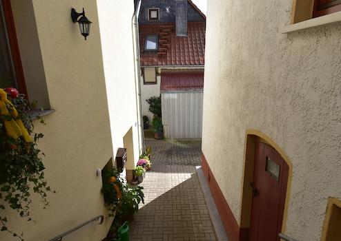Holzfachwerk, ausgemauert im Ober- und Dachgeschoss