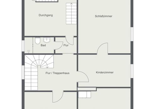 Flur/ Treppenhaus, 2 Zimmer, Kinderzimmer, Schlafzimmer, Bad, Durchgang