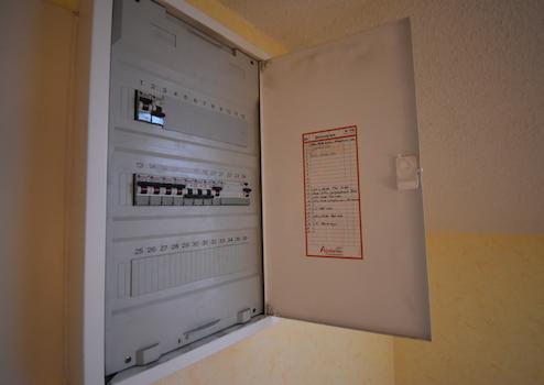 nach DIN und VDE-Vorschriften, Kupferleitungen, Sicherungskasten je Etage abgesichert