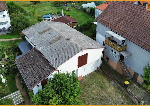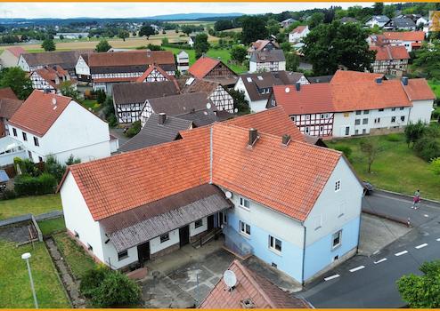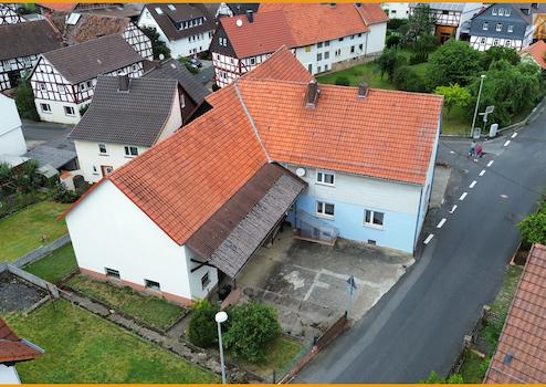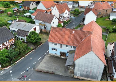 Dieses im Keller massiv und oberhalb ursprünglich in Fachwerk erbaute, solide Einfamilienhaus bietet eine Wohnfläche von rund 160m². Im Erdgeschoss finden Sie ein großes Wohn-/Esszimmer, eine Küche, ein Schlafzimmer sowie ein hell gefliestes Badezimmer mit ebener Dusche aus dem Jahr 2011. Im Obergeschoss sind ein Büroraum, ein Abstellraum, ein Badezimmer mit Dusche und WC sowie drei weitere Räume, die als Schlaf- oder Kinderzimmer genutzt werden können, gelegen. Das Kellergeschoss bietet Ihnen eine Waschküche, einen Heizungsraum, einen Vorratsraum sowie das Öllager und einen weiteren Abstellraum. Ein Freisitz im Garten lädt zu gemütlichen Stunden ein und der Gartenteil bietet genügend Fläche zum Spielen für Kinder. Ihre PKW können Sie bequem auf den bis zu fünf Stellplätzen im Hof parken. Das Nebengebäude bietet viel Lagerfläche und großzügigen Raum für Hobbys oder Gestaltungs- bzw. Ausbaumöglichkeiten. Weiterhin gehört eine Halle mit Garagen auf der gegenüberliegenden Straßenseite zum Angebot.