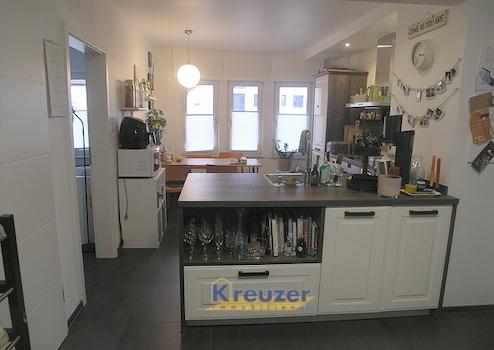 Im Erdgeschoß befindet sich die neu renovierte und sanierte 4 Zimmerwohnung mit ca. 85 m² Wohnfläche, Fußbodenheizung, neue Kunststofffenster mit elektrischen Rollläden, modernen Fliesen. Sie teilt sich wie folgt auf: 4 Studentenzimmern, ein modernes Tageslichtbad mit bodengleicher Dusche, Waschbecken, WC, WM-Anschluss. Ein großer, praktisch zugeschnittener Flurbereich mit offener Küche + schöner EBK inkl. Spülmaschine und Sitzgelegenheit für mehrere Personen.
