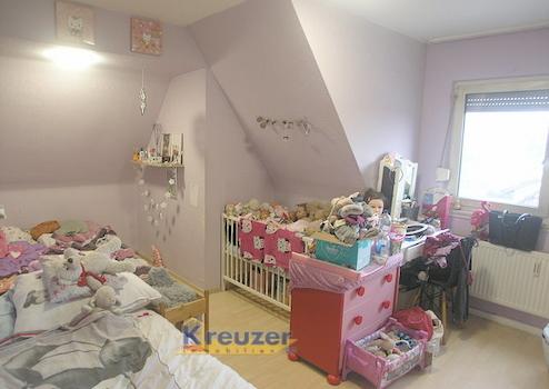 Das Obergeschoß beherbergt die 4 Zimmerwohnung mit ca. 85 m² Wfl. Sie teilt sich auf in einen üppig gestalteten Flur, 4 Zimmer, wobei 2 Räume miteinander verbunden sind. Eine geräumige abgeschlossene Küche mit EBK und Sitzgelegenheit. Ein Tageslichtbad mit Wanne Waschbecken und WM-Anschluss, ein sep. WC mit Tageslicht.