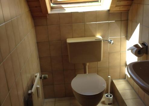 In diesem Raum ist auch die moderne Heizungsherme, die mit Flüssiggas betrieben wird. Auf dem Grundstück ist ein eigener 4000 l-Tank aufgestellt.