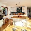 Das Highlight ist der über 85 m² große Wohn- und Essbereich mit bodentiefen Fensterfronten und einer Raumhöhe von bis zu 5 m. Sonnenterrasse und Garten sind sowohl aus den Wohn- als auch den Schlafräumen erreichbar. Der liebevoll angelegte, harmonisch eingewachsene Garten ist ein Traum. Hier können Sie zu jeder Tageszeit die Seele baumeln lassen.