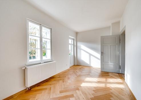 Schon beim Betreten spürt man die besondere Atmosphäre: Hohe Decken, edles Fischgrät-Parkett und sorgfältig aufbereitete originale Treppen und Fenster verleihen dem Haus eine herrschaftliche Ausstrahlung.