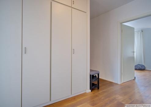 Die Wohnung befindet sich im 4. OG mit Lift und damit in der letzten Etage und beinhaltet einen PKW-Tiefgaragenstellplatz (Höhe maximal 1,80 Meter).