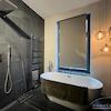 Geräumiges Tageslichtbad mit bodentiefer Dusche und freistehender Badewanne