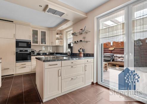 - Küche mit moderner Einbauküche und direktem Zugang zur Terrasse