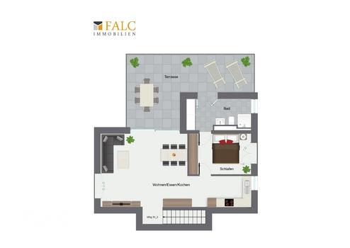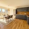 Das Herzstück der Wohnung befindet sich im Obergeschoss: der lichtdurchflutete Wohn-, Ess- und Kochbereich mit direktem Zugang zur weitläufigen Dachterrasse – ein echtes Highlight für Sonnenliebhaber und Genießer. Hier lassen sich Sommerabende stilvoll mit Familie oder Freunden verbringen.