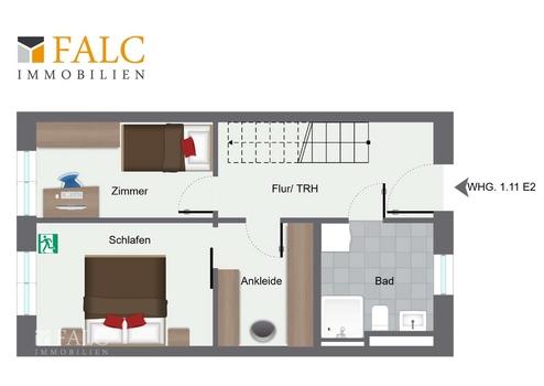 Beim Betreten der Wohnung empfängt Sie ein einladender Flur, von dem sich zwei Schlafzimmer, eine praktische Ankleide sowie ein modernes Badezimmer erschließen. Diese Etage bietet den idealen Rückzugsbereich für die Familie – ruhig, komfortabel und harmonisch gestaltet.