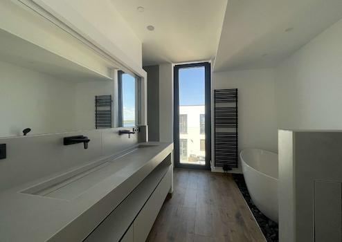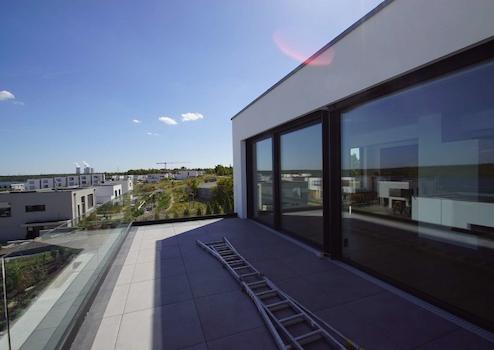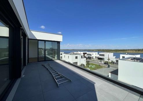 - riesige Dachterrasse (ca. 35m²) mit Glasgeländer + Blick auf den See