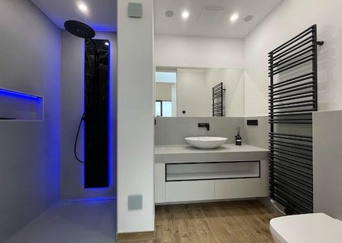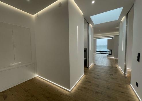 - LED-Strahler und Lichtband dimmbar über Smart Home Displays und Smartphone einstellbar