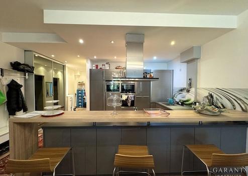 Die geschmackvolle Einbauküche fügt sich harmonisch in das elegante Gesamtbild ein und bietet höchsten Komfort für Kochliebhaber. Hochwertige Materialien, klare Linien und ein feines Gespür für Design, prägen die gesamte Wohnung. Große Fensterfronten sorgen für ein lichtdurchflutetes Raumgefühl und schaffen eine warme, repräsentative Atmosphäre.