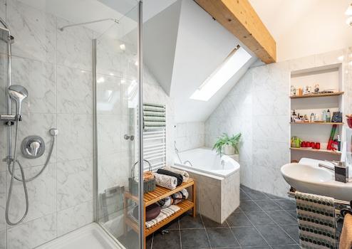- Helles Bad mit Wanne, Dusche und Fenster – Wohlfühlkomfort im Alltag