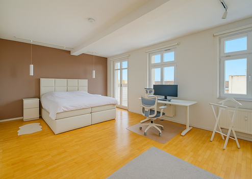 Das Haus kombiniert klassischen Altbaucharme mit modernem Wohnkomfort. Das Dachgeschoss wurde 2002 neu errichtet und bietet eine zeitgemäße Ausstattung sowie Aufzug bis zur Wohnung.