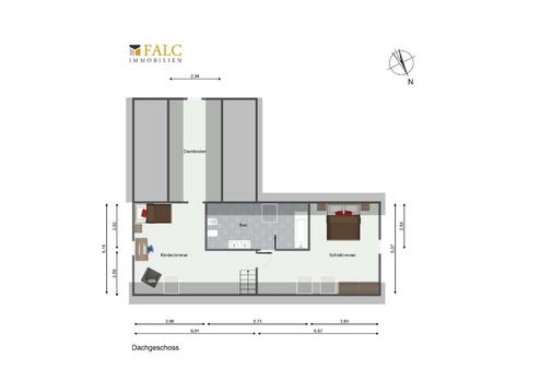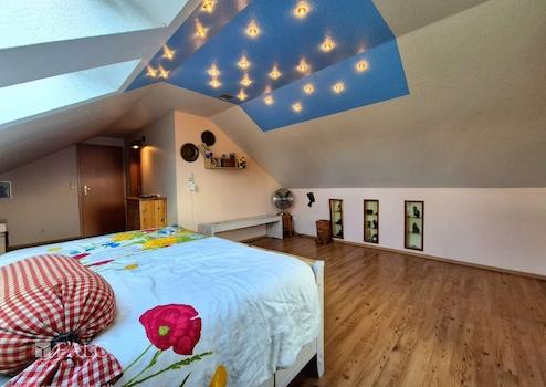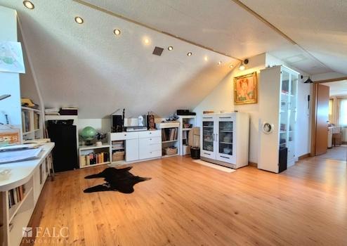 Ein weiteres Zimmer im Dachgeschoss kann als Büro oder Gästezimmer genutzt werden und bietet einen ruhigen Rückzugsort.