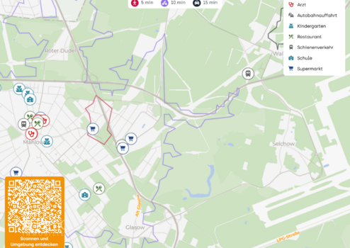 Die Anbindung an den öffentlichen Nahverkehr ist hervorragend, mit einer Bahnstation in etwa 15 Gehminuten Entfernung, die Ihnen eine schnelle Verbindung in die umliegenden Städte ermöglicht. Für Autofahrer ist die Autobahnauffahrt der B 96 in etwa 10 Minuten erreichbar, was eine bequeme Anbindung an das überregionale Straßennetz sicherstellt. Der Flughafen Berlin Brandenburg ist ebenfalls nur eine kurze Autofahrt entfernt, was diese Lage besonders attraktiv für Vielreisende macht.