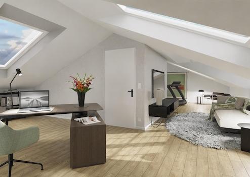 Das Dachgeschoss stellt eine zusätzliche Wohnfläche von ca. 40 m² dar, und ist vielseitig nutzbar – sei es als Arbeitszimmer, Hobbyraum oder weiteres Schlafzimmer. Die flexible Gestaltungsmöglichkeit lässt Raum für Ihre individuellen Wünsche und Bedürfnisse. Sollte ein Bad im DG gewünscht sein, ist dies problemlos gegen Aufpreis möglich. Alle Anschlüsse für einen späteren Bad Einbau hingegen, sind im Kaufpreis enthalten.