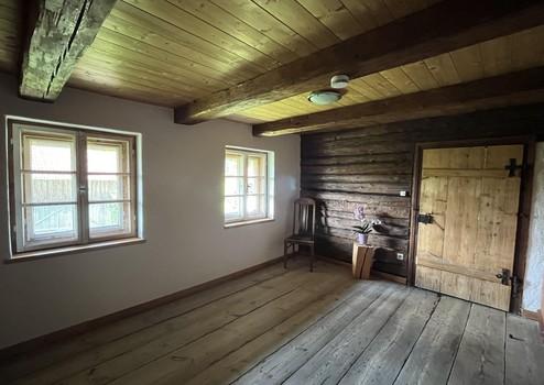 Über eine Holztreppe gehen Sie in das Obergeschoß wo drei Zimmer zum großen Teil mit alten Fußbodendielen, handbehauenen Balken und historische Türrahmen ausgestattet sind. Die Außenwände sind mit einer Wandheizung versehen. Das Badezimmer mit Badewanne ist modern eingerichtet und mit einer Infrarotplatte beheizt. Eine weitere Treppe führt in den Speicher, in dem ein großes Gästezimmer mit Sonnenaufgangsblick diese Wohneinheit abrundet.