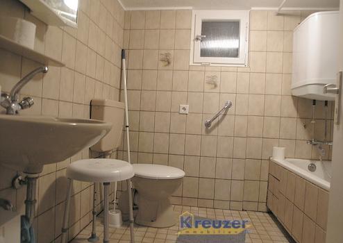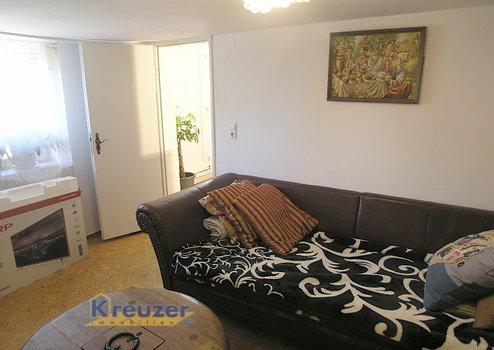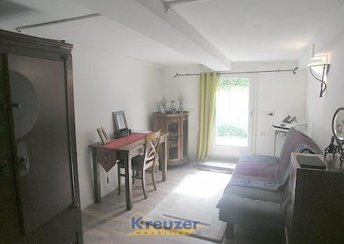 Im EG/Souterrain (ca. 50 m² Wfl.) sind das schnuckelige Wohnzimmer, Schlafzimmer, die Küche mit der Küchenzeile, das innenliegende Bad mit Wanne, Waschbecken, WC und Flur untergebracht. Zusätzlich können Sie sich an einem praktischen, großen Kellerraum erfreuen.