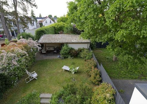 Das Garten-Extra: ein massives Gartenhaus bietet einen etwa 12 qm großen Außenbereich für die Gartennutzung auch bei Regen und einen etwa 10 qm großen geschlossenen Abstellbereich, z.B. für Fahrräder, die über ein Gartentor direkt in den überdachten Bereich geschoben werden können. Das Gartenhaus wird vom Wohnhaus mit Strom versorgt, ist elektrisch beleuchtet und verfügt Steckdosen, z.B. für E-Bikes.