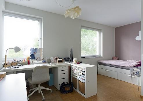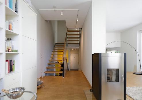 Das Highlight im UG ist ein weiterer, heller Wohnraum mit Tageslicht und Gartenzugang, der viele Nutzungsmöglichkeiten bietet: Homeoffice, Gästezimmer, Lese- oder Fernsehzimmer und vieles mehr. Im Untergeschoss des halbunterkellerten Hauses befindet sich darüber hinaus ein weiterer Raum für die Haustechnik sowie Waschmaschine/Trockner, eine Lagermöglichkeit für Pellets und ein Bereich für Vorratshaltung.