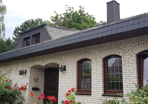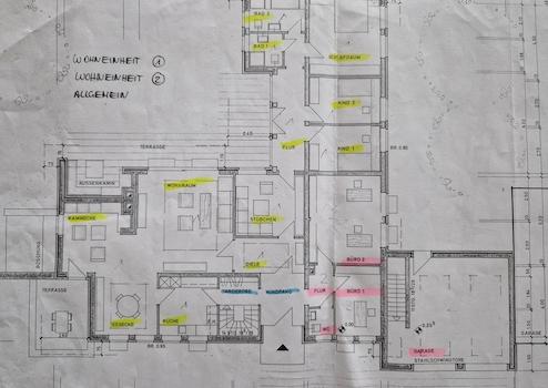 mit mehreren Stellplätzen vor dem Haus. 197 qm Wohnfläche auf einer Ebene zzgl. Kellerräume ca. 110 qm, Doppelgarage mit ca. 40qm