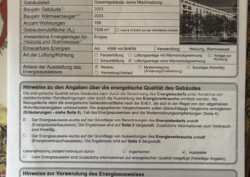 Bei dieser ansprechenden Immobilie handelt es sich um einen Neubau, der durch eine gehobene Innenausstattung besticht und die Sie zum 01.12.2023 erwerben können. Zwei Badezimmer und ein separates Gäste-WC zählen neben drei schönen Zimmern zu dem Objekt. Über einen Fahrstuhl gelangen Sie bequem in die entsprechende Etage. Die Eigentumswohnung befindet sich in einem 2023 erbauten Haus und wird durch eine Fußbodenheizung beheizt. Ein aktueller Energieausweis ist vorhanden. Der Balkon lädt zum Entspannen und Sonne tanken ein. Praktischerweise gibt es auch einen Kellerraum. Hier finden Sie genügend Stauraum für Ihr Hab und Gut. Eine bereits eingebaute Küche spart Ihnen beim Einzug Zeit und Mühe, sodass Sie gewissermaßen sofort mit dem Kochen beginnen können. Sie können die Eigentumswohnung provisionsfrei von privat erwerben. Derzeit ist diese Wohnung für 2.700 € vermietet und eignet sich sehr gut als Kapitalanlage oder zur Eigennutzung.