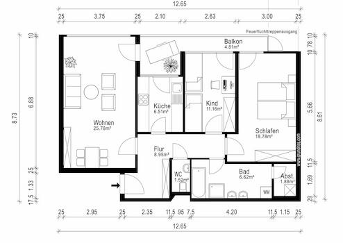 Die Wohnung ist vermietet, gepflegt und liegt in einem Wohngebiet mit guter Anbindung.
