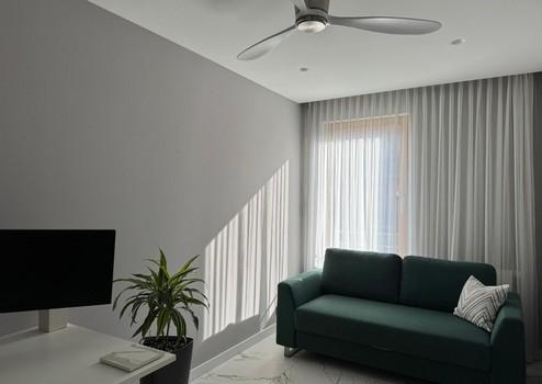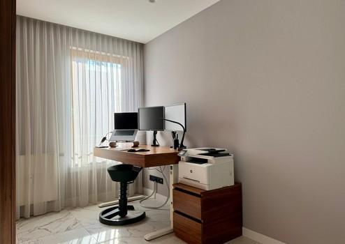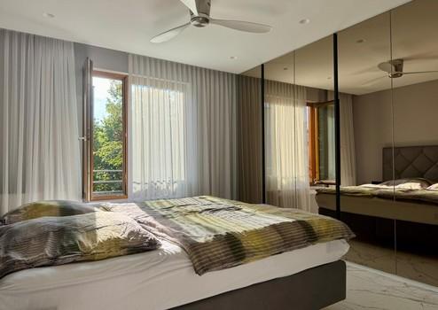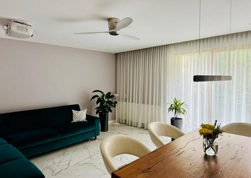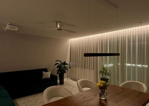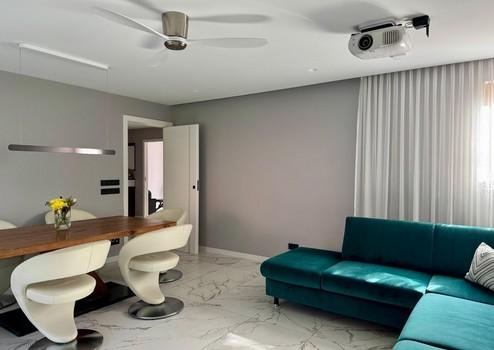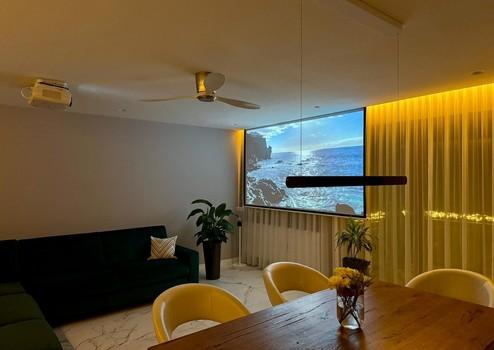 Elektrische Rollläden mit App-Steuerung, Kermi-Heizkörper mit Bosch-Thermostaten, Casa Fan-Deckenventilatoren, Philips Hue-Lichtsteuerung, Apple TV mit Epson-Projektor und elektrische Leinwand sowie ein cloudbasiertes Sicherheits- und Alarmsystem bieten höchsten Komfort und Sicherheit.