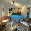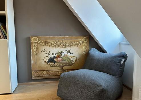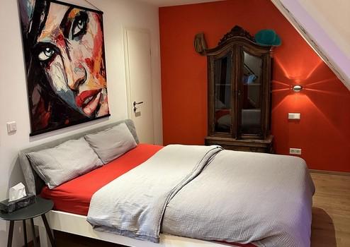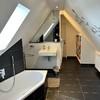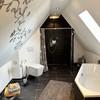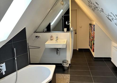Das Schlafzimmer ist durch eine Treppe mit einer einem hochwertigen en Suite Badezimmer mit begehbarer Dusche und Badewanne verbunden. Dort befindet sich auch ein voll möbliertes, großes Ankleidezimmer.Ein zweites Schlafzimmer befindet sich im durch eine Treppe verbundenen EG und ist mit einem Duschbad ausgestattet.