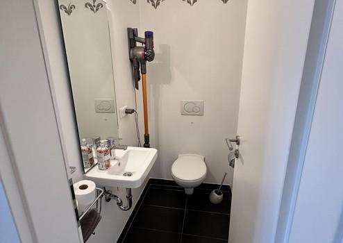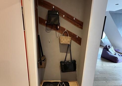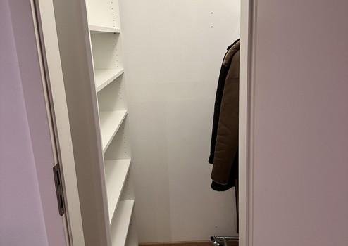Im Gang zwischen Wohnzimmer und Schlafzimmer befindet sich links eine Gästetoilette und rechts die Garderobe.