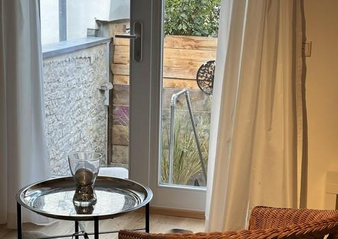 Auf der Eingangsterrasse aus Muschelkalk und dem 56m2 begrünten Dach mit 22m2 Eichenholzterrasse und einem großen Eichentisch lässt es sich wunderbar vom Alltagsstress erholen. Am zweiten Schlafzimmer bietet eine kleine Terrasse eine wunderschöne Rückzugsmöglichkeit.