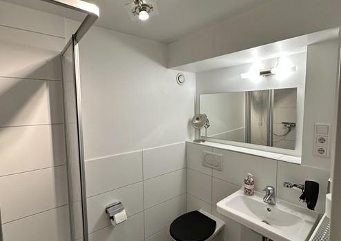 Zu dem Apartment zählen neben drei attraktiven Zimmern nicht nur ein Badezimmer mit großer Dusche und Badewanne, sondern auch ein separates Gäste-WC.