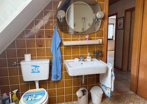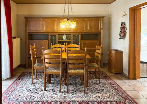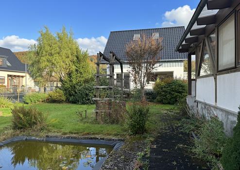 Diese Immobilie wurde ca. im Jahr 1975 in massiver Bauweise auf einem ca. 609 m² großen Grundstück errichtet und bietet vielseitige Nutzungsmöglichkeiten. Das Einfamilienhaus verfügt über eine gut durchdachte Raumaufteilung mit einer Wohnfläche von ca. 115 m², verteilt auf das Erd- und Obergeschoss mit insgesamt fünf Zimmern. Im Erdgeschoss befinden sich ein Gäste-WC, ein großzügiges Wohnzimmer, ein Esszimmer mit Zugang zum geräumigen Wintergarten sowie zum Garten und eine Küche. Das Obergeschoss umfasst zwei Schlafzimmer, ein weiteres, kleineres Zimmer sowie ein Badezimmer. Zusätzlichen Stauraum bietet das Untergeschoss, in dem sich unter anderem zwei ausgebaute Kellerräume und ein weiteres WC befinden. Der pflegeleichte Garten lädt mit seinem idyllischen Teich zum Entspannen und Verweilen ein. Hier genießen Sie erholsame Stunden, ohne großen Arbeitsaufwand betreiben zu müssen. Das Objekt befindet sich in einem renovierungsbedürftigen Zustand, bietet jedoch erhebliches Potenzial zur individuellen Gestaltung und Wertsteigerung.