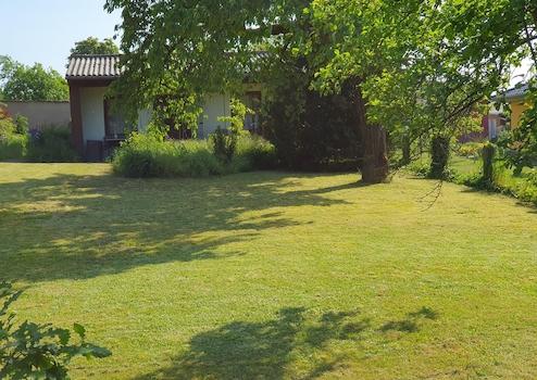 Auf dem Grundstück steht noch ein sanierungsbedürftiger Bungalow, der integriert, zum Gästebungalow umgebaut , oder abgerissen werden kann.