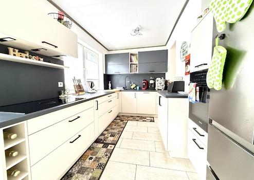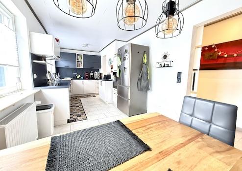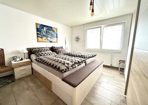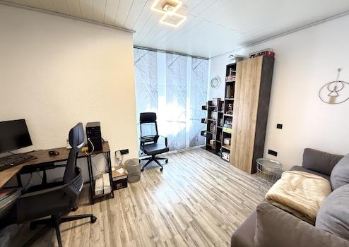 Das moderne Badezimmer wurde etwa im Jahr 2024 renoviert und befindet sich in sehr gutem Zustand. Die Küche ist modern ausgestattet und schließt direkt an das Esszimmer an. Vom Wohnzimmer aus gelangt man auf beide Terrassen. Im Wohnzimmer besteht außerdem die Möglichkeit, einen Pelletofen anzuschließen, was für eine angenehme Wärme und eine gemütliche Atmosphäre sorgt. Im Obergeschoss befindet sich ein weiteres Zimmer, das sich ideal als Kinderzimmer, Büro oder Gästezimmer nutzen lässt.