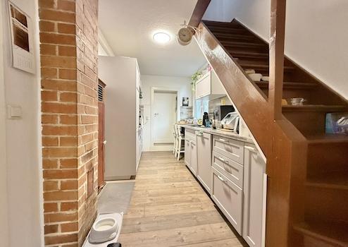In ruhiger und beliebter Wohnlage von Schildow entsteht durch Teilung dieses gepflegten Areals das vordere Grundstück mit einer Größe von ca. 733 m². Das darauf befindliche Einfamilienhaus bietet eine Wohnfläche von rund 65 m² und verfügt über drei gut geschnittene Zimmer, ein separates Ankleidezimmer sowie ein teils ausgebautes Dachgeschoss, das zusätzlichen Stauraum oder individuelle Nutzungsmöglichkeiten bietet. Der gemütliche Wohnbereich wird durch einen Kachelofen ergänzt, der an kalten Tagen für wohlige Wärme sorgt. Die moderne Küche ist funktional gestaltet und fügt sich harmonisch in das Gesamtbild ein.