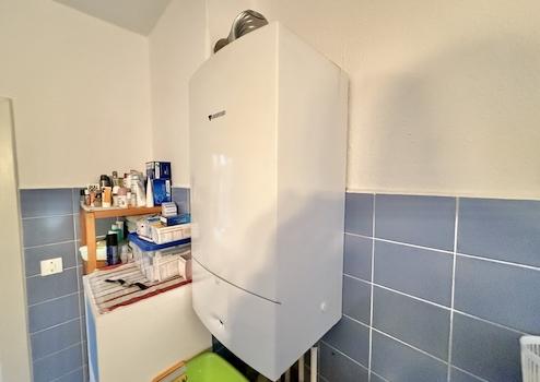 Beheizt wird das Haus über eine effiziente Gasbrennwerttherme, die zugleich die Warmwasserversorgung übernimmt.