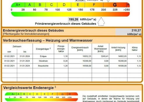 | Energieverbrauchkennwert | 210,27 kWh/(m²*a) |