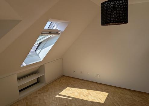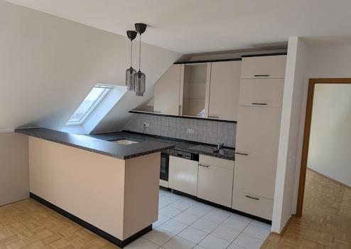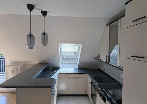 Eichenparkett, Hebe-Schiebetür zum Balkon, gebrauchte Einbauküche ist vorhanden und im KP enthalten, Einbauschränke in der Dachschräge im Schlafzimmer, elektrische Velux Rolladen in der Dachschräge, abschließbarer Keller
